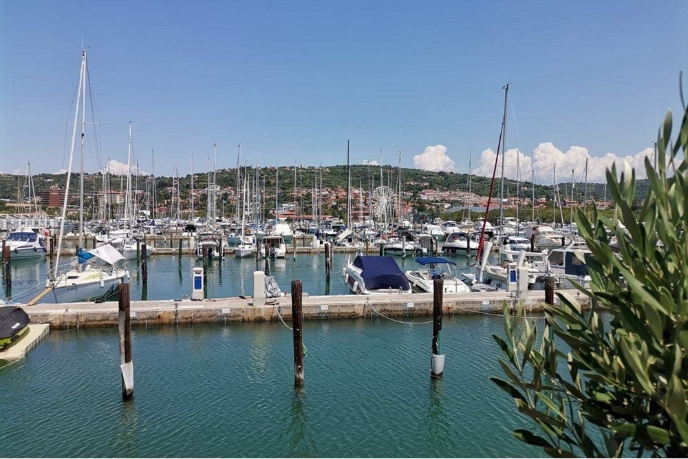Das Hausboot SUNSET liegt direkt am Yachthafen von Portorož, mit atemberaubendem Blick auf das Meer